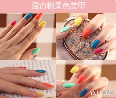 如同糖果罐一样色泽多彩,不同糖果色彩混合在一起,这样的糖果色美甲在夏日十分流行,更是备受女生们的大爱哦!五彩缤纷的糖果色,夏日爆清新!