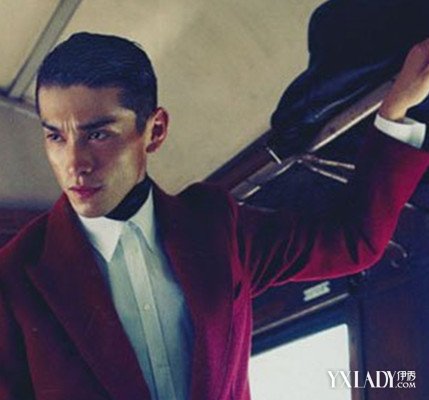 利落的油头发型,呈现男士的复古风范,后撩的光泽发丝,搭配红色西装,演绎上世纪70-80年代的潮流气息。