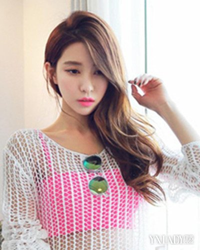 一九分形式的长发造型设计可是最显女生十足的优雅妩媚风了,再搭配这种浅栗色的染发颜色与丰盈式的长发烫发设计同样优雅迷人。