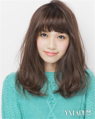 内扣齐刘海搭配蓬松中长发让大脸瞬间变小脸,而且发色十分的衬肤色,特别适合皮肤白皙的大脸女生们。