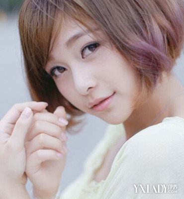 2015年想要造型更加潮流一点,渐变色的短发是必备的,渐变的紫色唯美浪漫又好看哦,斜刘海修饰脸型,修颜很减龄哦。