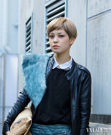 亚麻色的短发发型,短发剪薄,没有厚重感,反增清爽气质、个性帅气,刘海剪短,在眉头上方,两颊发丝也在耳际以上,突出清秀的五官,搭配暖色系的冬季妆容,显的格外具有亲和力。