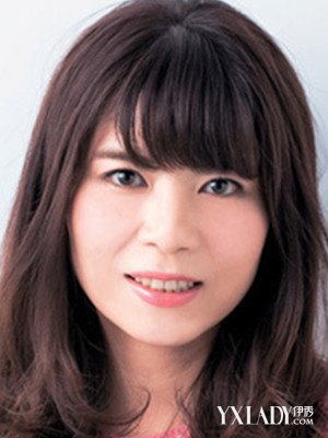 侧分长刘海沿着脸部线条内扣,遮盖住过宽的颧骨,另外一侧的卷发随意别在耳后,不对称感设计看起来让脸型看起来更加出众迷人。