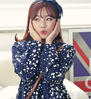 这款跟上面那款一样,都是空气刘海配外翻发尾。觉得单调的话可以向这个MM一样加一个发箍装饰,立刻又变成另一种感觉哦!