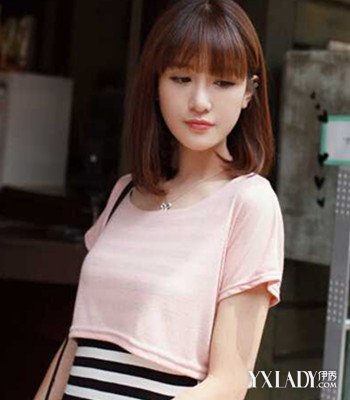 2014十分清新的女生发型设计,简约的中长发搭配内扣的平刘海头发,完美修颜脸型外,更是彰显出最甜美清纯气息。