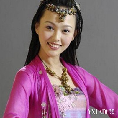 1灵动感十足的雪纺仙女风长裙,搭配这款唐嫣诠释的紫萱公主无刘海的扎发披发发型,很有仙女形象的一款仙剑紫萱古装发型。
