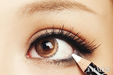 3、将眼线笔垂直地放在下眼皮的正下方。这样画的话,就不用害怕因为眼线太粗而变成熊猫眼了。