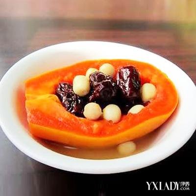 木瓜是尽人皆知的美白食品,它的维生素A含量极其丰富。中医认为,木瓜味甘、平,能消食健胃、美肤养颜、滋补催乳,对消化不良或便秘的人也具有很好的 食疗作用。美容食疗时,木瓜可配牛奶食用,也可以用来制作菜肴或粥食。红枣是调节内分泌、补血养颜的传统食品,如果红枣配上莲子食用,又增加了调经益气、 滋补身体的作用。