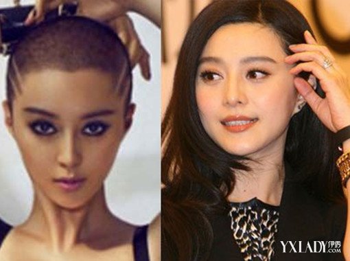 范冰冰精致自然的气质妆容,修身的时尚服饰,搭配这款个性创意的美女剃光头发型,是一款充满了另类魅力的女生发型。