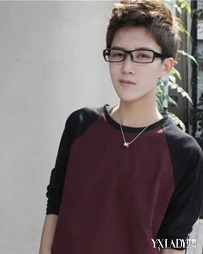 顶部蓬松感设计,展现出帅气、潮流,下面一张精致的脸蛋呈现,佩戴上一副眼镜,学院气息尽显,亚麻棕染发色,也是本季最流行的。