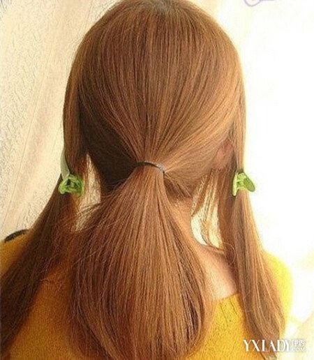 step5、用小橡皮筋扎好马尾末端,记住头发要留点蓬松感,不要让它绷得太紧哦