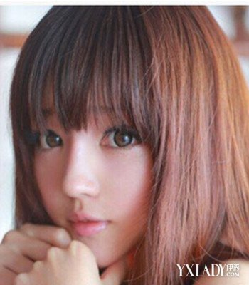 这是一款直刘海的女生直发披肓发型,头发染的是浅栗棕色把女生的精致五官很好地展示出来,还有无辜的眼神特别的俏皮可爱。