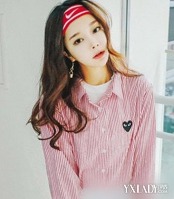一款非常有范的长烫发发型,发尾部分做了波浪式的卷发处理,随性中又透着一丝小性感,挑染的发色为整体发型大大提升了时尚感,搭配一个运动风的发带,帅气利落又不失气质。