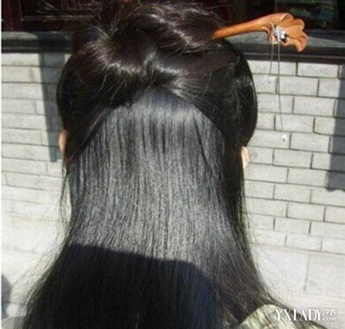 再用另一个手把簪子的尖转回来,再插进去,这样你的头发就很稳了。为了让头发更好看一些,还要再拿下面的头发进行加工一下.