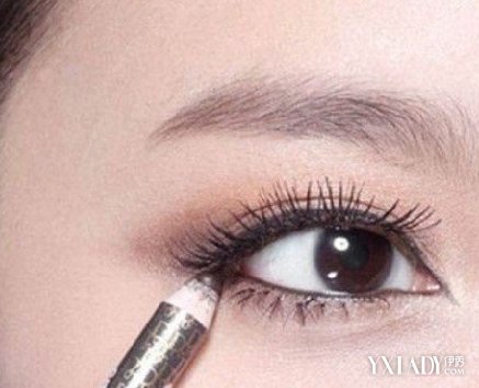 再把蘸上粉的海绵粉扑对折。用折角均匀地按压下眼睑,把刚才擦掉的粉补上。注意粉不要沾在睫毛上。