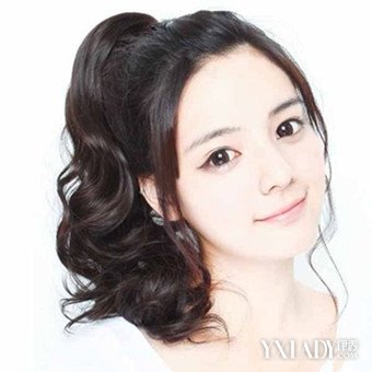 其实卷发扎起马尾来也很靓丽,而且发尾的卷曲还会透露出一种小性感。如果的脸型不够好看,可以如图所示留下一些鬓发,能很好的修饰脸型,达到瘦脸的效果。