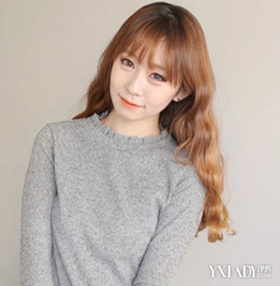 简单的利用的是灵动感十足的空气感刘海造型设计,再浅色系的棕黄色染发颜色与韩式时尚的长发水波纹烫发更添温柔甜美可爱风。
