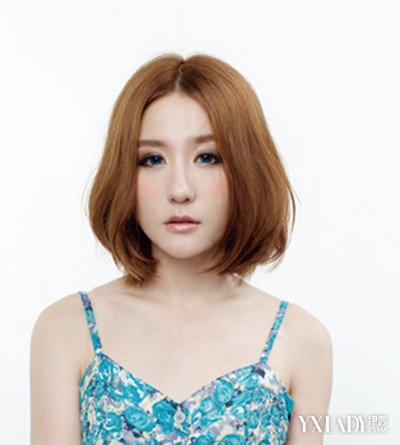 一头棕色系的头发,简单的打造成中分的短发造型,发尾微卷的设计,时尚又不显得招摇,脸颊胖的头发,很好的柔和面部曲线,起到修颜的作用。