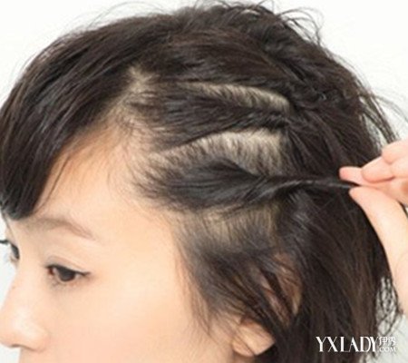 step1:梳理一下波波头。step2:先用手将头发抓拉蓬松。step3:沿着刘海取出左侧的头发一一扭转成发辫后固定在脑后。step4:最后用发夹一一固定就好了。
