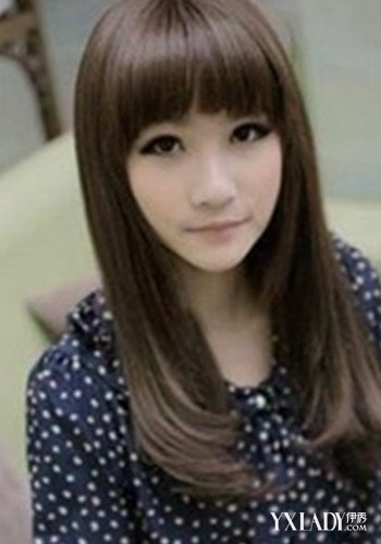 略显层次感的内扣发尾长发发型,搭配减龄修颜的齐刘海,更显时尚和淑女风,很是流行的一款女生发尾内扣发型。