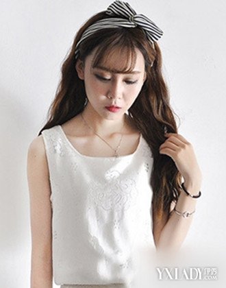 空气刘海尽显清新灵动,加上偏向于深棕色的发色,可以让美眉的皮肤看起来显得白皙透亮,波浪式的小卷让头发看起来特别有蓬松感,再搭配一个精致的发箍,甜美可爱的气质尽显无疑。