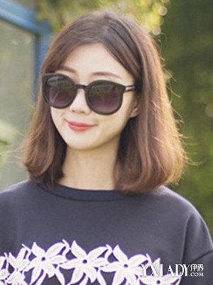 时尚的的中分造型设计将女生精致的脸型完美的呈现出来,现搭配深棕色的染发颜色与齐肩形式的韩式波波头发型更添潮流气质感。