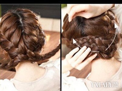 step4:最后将两只辫子交叉,再用发夹固定在头顶。