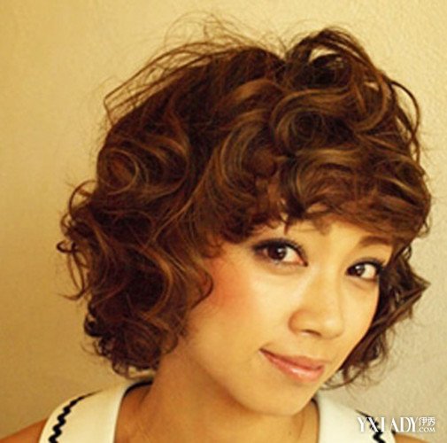 尽显成熟韵味女生短卷发,卷曲灵动的发丝包裹住整个头部,厚重感的发丝特别适合职场女性。