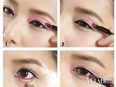 在睫毛根部用深色眼影呈线状描画。然后在明亮色与深色之间,用眼影棒将两种颜色轻轻匀开,就可形成漂亮的层次感。