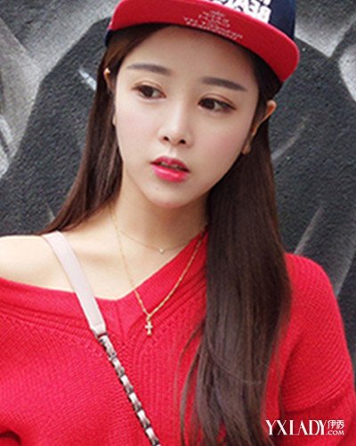 同样搭配的是清爽的露额发型将女生精致的五官完美的呈现出来,而与清新自然的长发直发相搭,红色的帽子与服装搭配更添粉嫩可爱风。