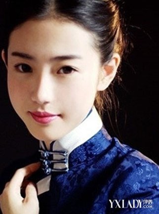 这款中分盘发发型也是一款不错的文艺复古发型设计,乌黑莹亮的长发扎露额的中分盘发造型,清新大方的发型搭配旗袍古典韵味十足。