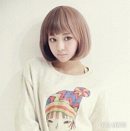 这是一款特别清纯的瓜子脸女生,选择了一一款波波头短发发发型,头发选择的是棕色的发色,显得女生特别有灵动感。
