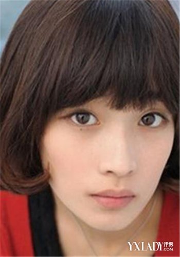 蘑菇头改良的发型,发尾处微微内扣的卷度,完美的弧线恰好修饰了脸部的线条,碎碎的齐刘海也遮挡住了额头的部位,减龄与修颜同时达到。