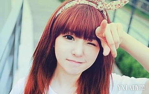 空气式的刘海让美眉看起来特别的可爱,到下巴的头发内扣的处理可以有修颜瘦脸的作用,金棕色的发色令美眉看起来也特别吸引人,有一种女神的感觉,发尾的内扣,也让头发看起来更加的顺直。