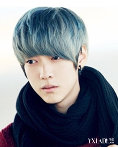 时尚的韩国男生发型,帅气的时尚男士发型设计,在暗灰色发色的点缀下显露出无比的时尚感来,清爽的露耳短发颇有个性范。