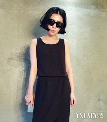 如果你觉得只是中分短发太枯燥了,那可以尝试将发梢烫卷,不过要注意,烫卷最好可以选择稍微内弯的,不要选择过于花哨的烫卷,如图中女生一样,或者你也可以将头发留长一点点再烫,效果会更好,这种中分短烫发有不错的修颜效果,遮住方脸也不是问题,时尚又好看,很适合方脸的女生。