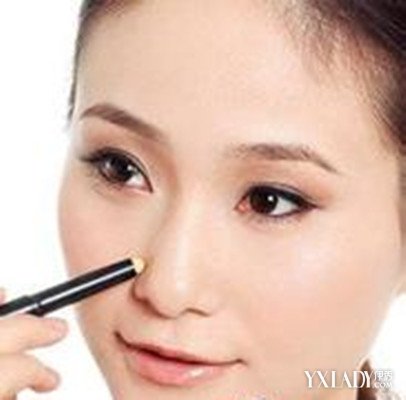 运用化妆技巧,让鼻子秀出来。化妆时,先给鼻子打上高光,然后重点在两眉之间打比较多的粉底,顺势下拉,将粉底液打全整个鼻梁,在鼻梁两侧沾少许粉底液即可。这样可以“收服”两侧鼻翼,突出鼻梁,让鼻子看上去变得直挺有型。