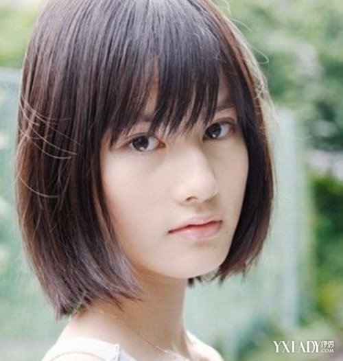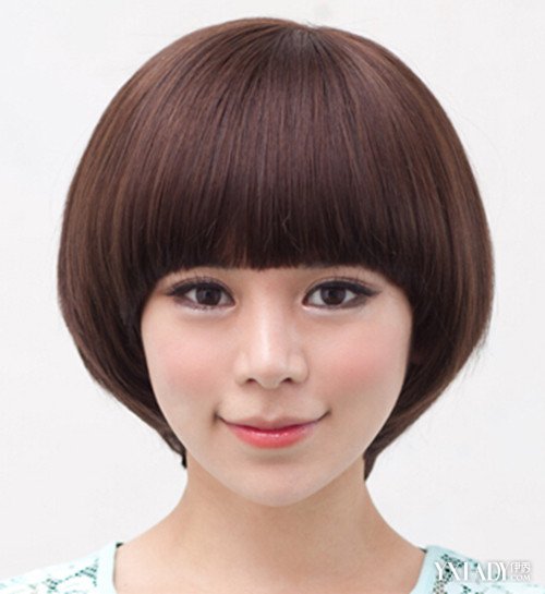 这是一种齐刘海短发,齐刘海是修饰圆脸最好的发型,能很好的修饰脸型。记得刘海一定不能剪太短,更不能剪碎,前面的头发也不能太厚,刘海要刚好在眉毛以下,不要露出眉毛,不然就像蜡笔小新啦,齐刘海还会显得眼睛比较大,是一款大圆脸女生值得尝试的发型哦!