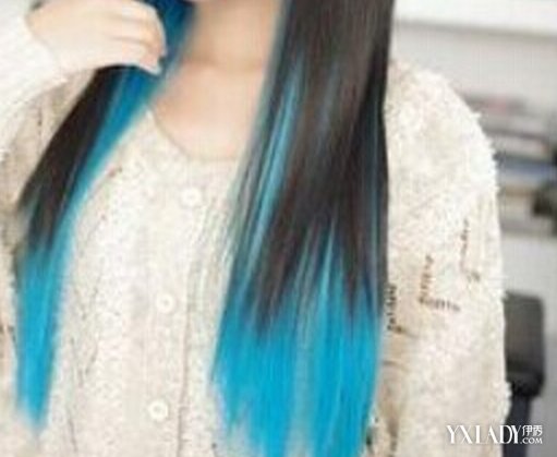 5.这是一位可爱的女生直发发型,再把头发挑染上天蓝色的头发,这样看起来是特别的有个性的。
