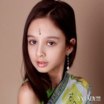 儿童舞蹈发型三一张迷人的瓜子脸型,点上美人痣,尽显异域风情,披肩的中长直发与斜肩小披风,十分可人。