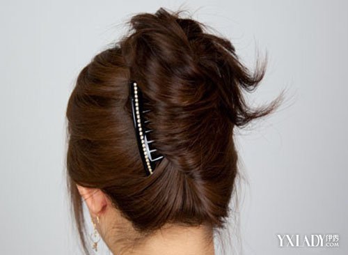 最后是戴上发饰,像这样盘发就完成了,戴上精致的发饰更添魅力。