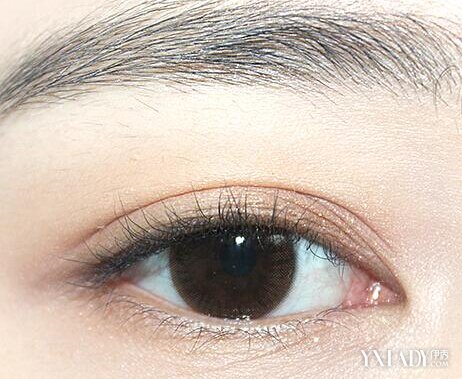 如果你的眼皮是单眼皮或者内双,那么小编建议你可以粘上双眼皮贴,眼睛看起来会好看很多哦。如果你本来就是双眼皮,那是最好的了,第一步可以省略了。粘好双眼皮后,在上眼皮扫上浅棕色的眼影,下眼睑后半段位置也要扫一点。