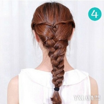 长头发盘发方法图解示范中,这款辫子盘发发型看似复杂,但是步骤一一分解,也属于是一款相当简单的盘发发型。首先将所有的头发在脑后固定成马尾发型,然后用手捏住用来固定马尾的橡皮筋,将其微微向后拉扯,让马尾辫变得松散一些,随后将马尾辫编成三股辫造型。用手在发根处拉扯出一个洞,为盘发做好基础造型工作。