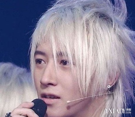 时尚个性的银白色的挑染发色,修剪的极具弧度感的层次感斜刘海,很是有偶像范儿的一款男生银白色的染发发型。?银白色头发怎么染呢?在银白色的染发时候...