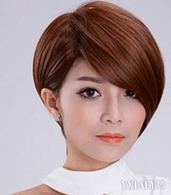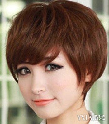 一款很显青春学生气质感的16年最新女生假发短发发型,简单的斜刘海造型设计再配合时尚的棕色染发造型最显女生的清新感了,而碎发形式的短发更添纯美学院风。