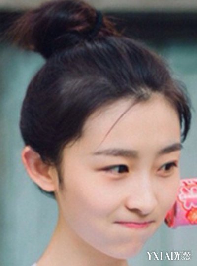 很少女系的一款丸子头的扎发发型,无刘海发型的设计显露出少女的天真与清爽,也正是这个季节造型的不二选择哦。