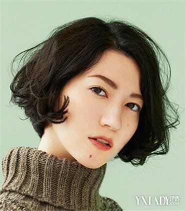 一款很适合轻熟女的圆脸女生短发设计,同样是清新自然的乌黑发色设计,与这种偏分的露额造型更添清爽感,凌乱感的蛋卷头短发烫发优雅中更有十足瘦脸效果。