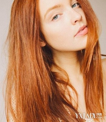 橘黄色的欧美风长发发型,中分刘海勾勒出完美小脸庞,修颜更减龄哦,随意散搭着的发丝在肩上,极具女人味。这是很适合成熟女人的发型。
