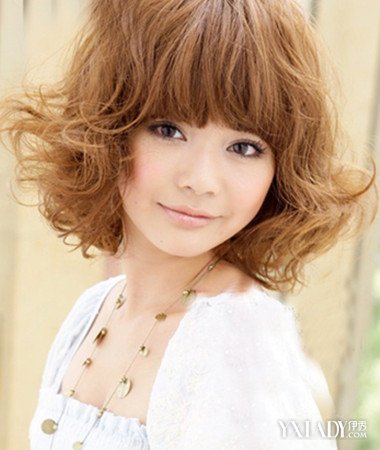 亚麻色系的发型加上日系刘海是很修颜减龄的一款发型,由卷发形成的一个小卷卷看起来可爱无比,很适合圆脸的妹子。发尾蓬松卷曲的梨花头将女生的小脸修饰得格外精致,而发尾采用内卷和外卷两种方式,很别致的一款设计。将耳际旁的部分发丝处理成一种时尚的空间感,在耳朵旁边营造出小灯笼的感觉,表层发丝的凌乱感增加了一种潇洒的节奏。