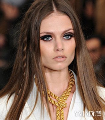 中分发型的直发发型,侧面加上小麻花辫突显时尚靓丽,是欧美成熟女性最爱的发型。这样的发型适合稍微成熟一点的女性,上班族也是可以的。